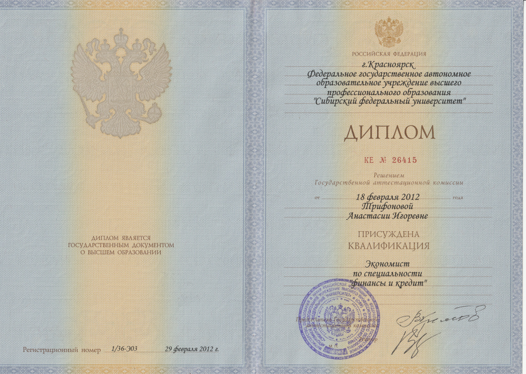 Окончила Сибирский федеральный университет. Институт экономики управления и природопользования. (факультет: экономический)